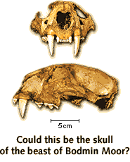 Beast of Bodmin Moor : is a black panther like creature that is believed to inhabit Bodmin Moor in Cornwall. Indeed there have been around 60 other big cat sightings recorded in the area since 1983 and experts believe there is a population of big cats in and around mid-Cornwall. There have even been some sightings as far apart as Kent and Scotland.