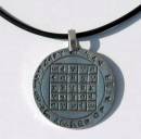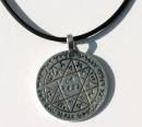 The King Solomon Seals are individually handmade in Pewter or Silver, decorated with Swarovski Crystals, brass and copper elements and hand painted. The decor pieces (Models 366##) can be hung on a wall at the home or office. The Solomon Seal necklaces (Models 336##) are made of 925 Sterling Silver, decorated with Swarovski Crystals, copper and brass beads, and hand